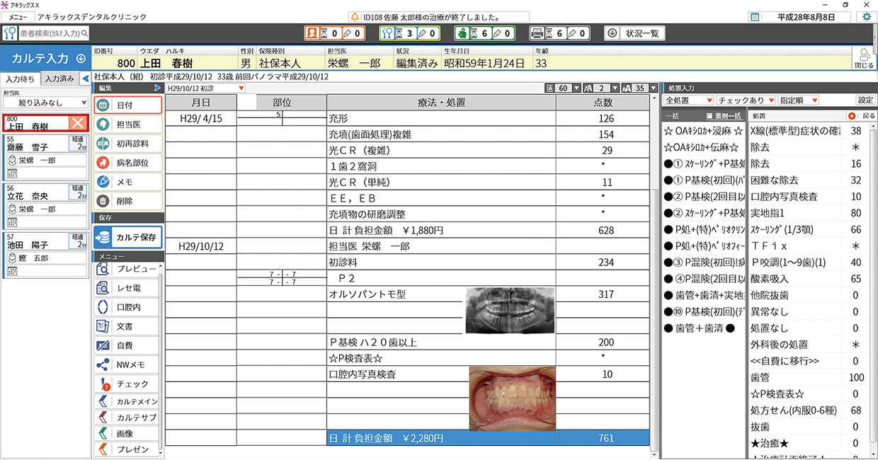 複数患者に対する業務を同時進行できる機能を新たに搭載したことで、受付、診療室それぞれの作業効率が大幅に向上しました。例えば、カルテ入力の途中で、別の患者さんのカルテを参照したり、入力することも可能です。また、受付業務では、新患登録の途中で、来院された別の患者さんの受付処理を行うことも可能です。